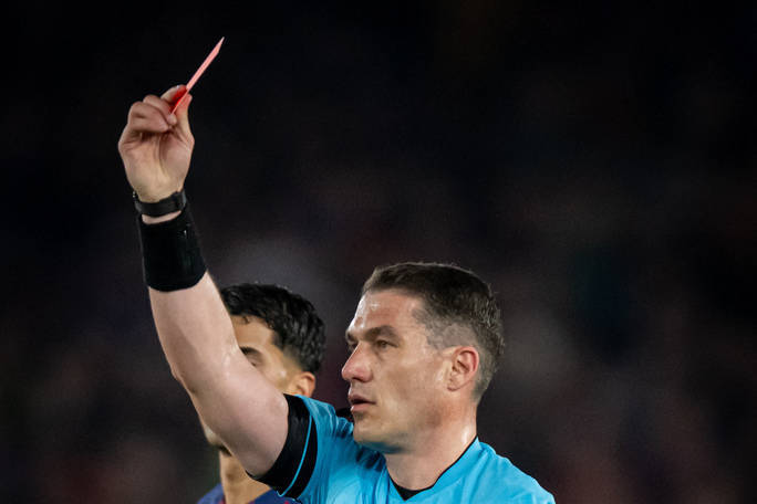 据统计,在近10个赛季的欧冠比赛中,巴萨是吃到红牌最多的球队,总共拿到12张红牌。目前巴萨的两名主力后卫在近三个赛季都在欧冠染红:2023-24赛季,阿劳霍在对阵巴黎圣日耳曼时染红;2024-25赛季,库巴西在对阵本菲卡时染红;2025-26赛季,库巴西在对阵马竞时染红。